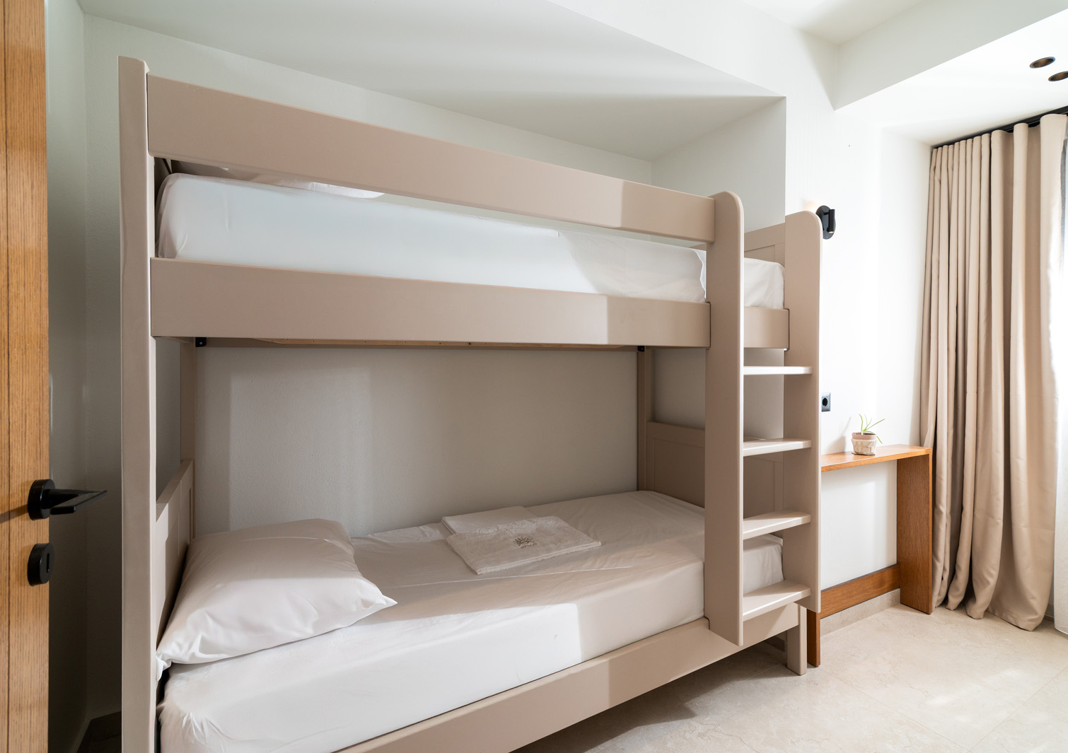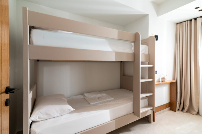 One double bed, one bunk bed, and one sofa bed)